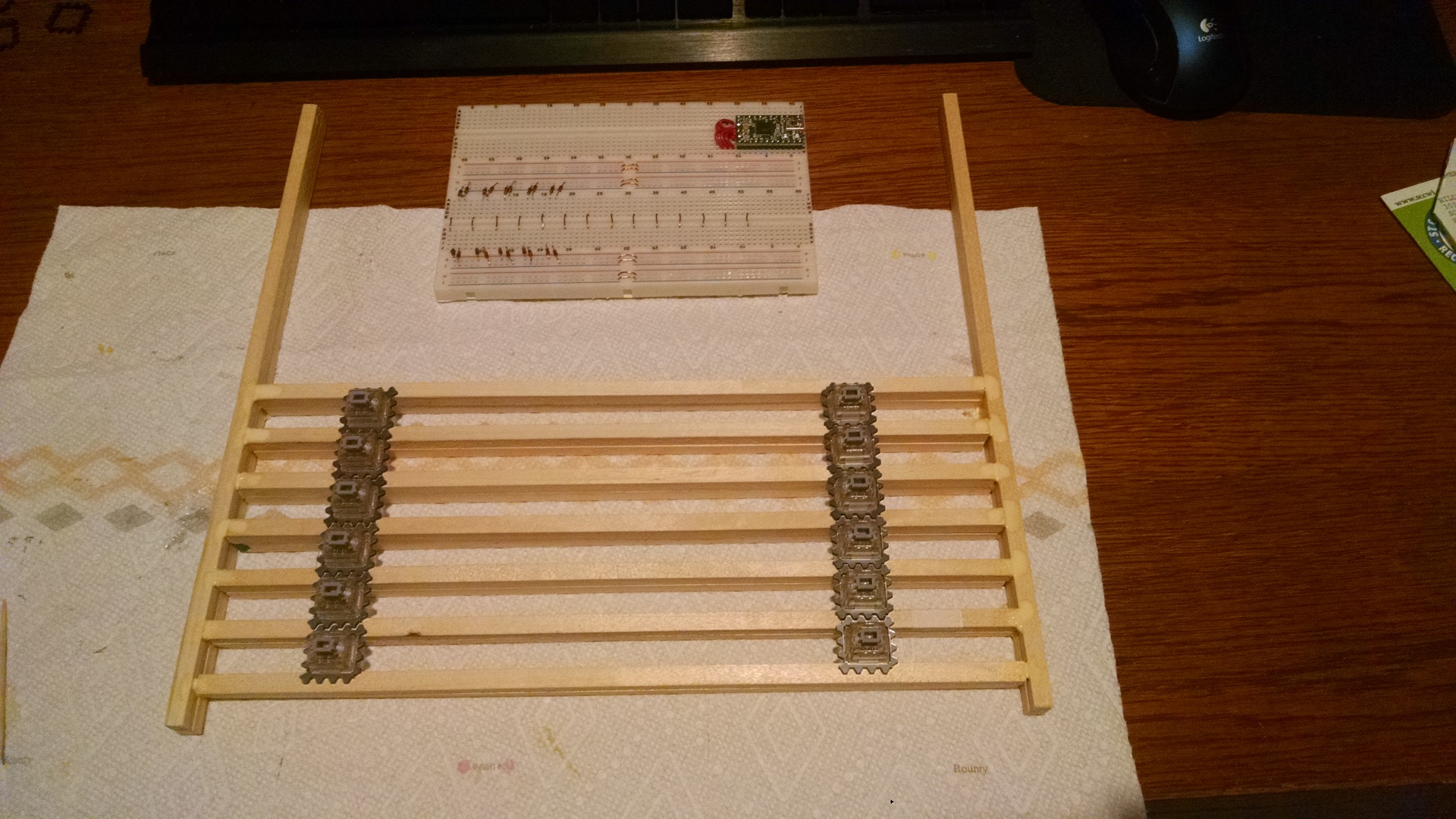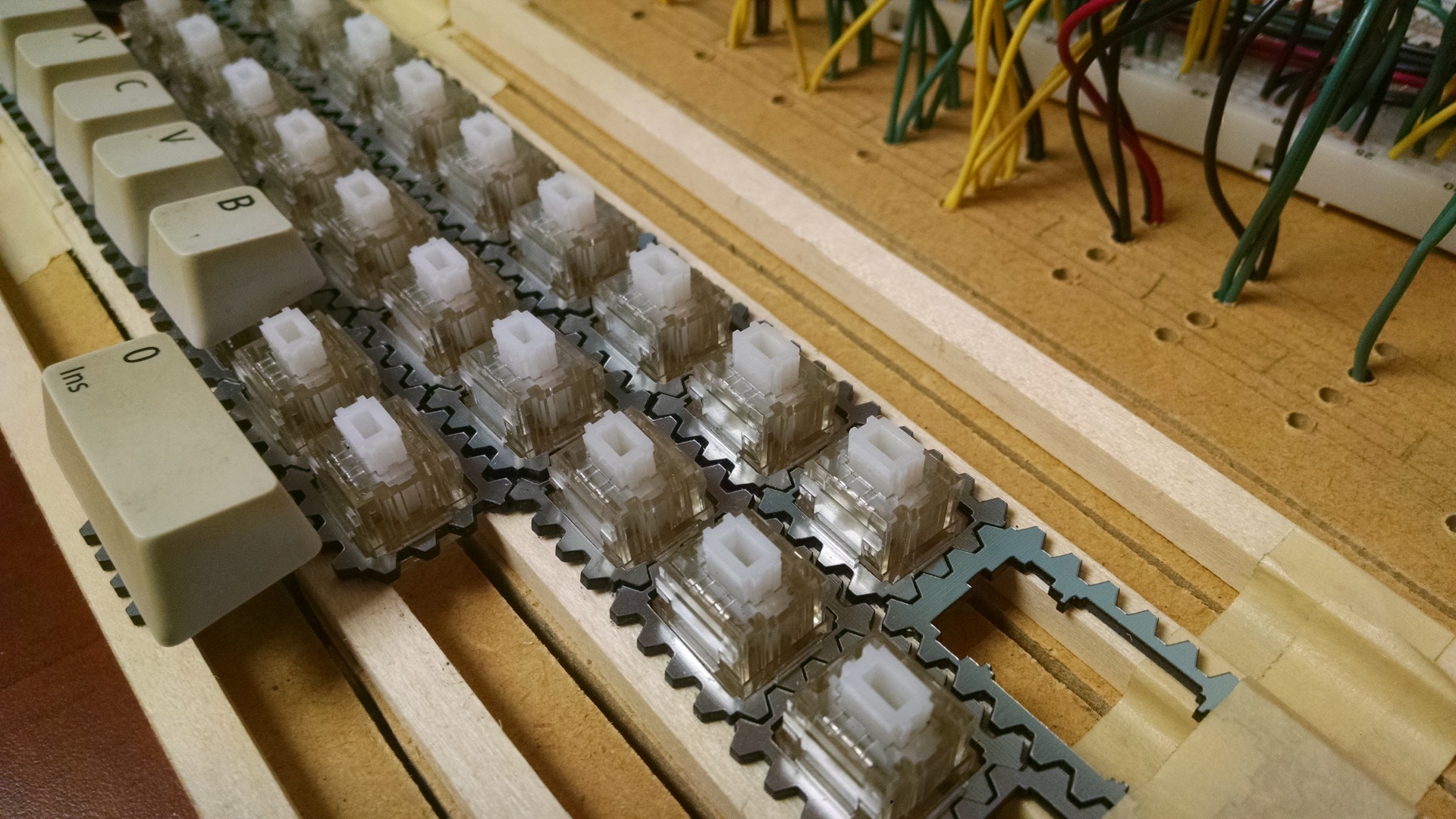able to use 1/4" square wood dowels to make my rows. I wanted to be able to use MX switches as