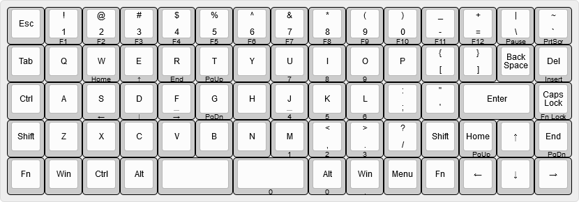 This is the layout I'm using along with the function layer. I used Easy AVR USB Keyboard Firmware