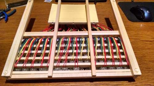 A closeup of the wires where you can see the rows and diodes.